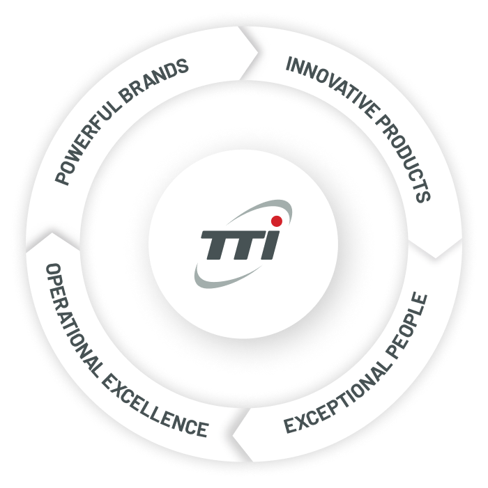 TTI is a global strategy-based organization. We have been diligent in researching and refining the key concepts for ongoing sustainability and growth. Early on, leadership identified four strategic areas that would drive our success: Powerful Brands, Innovative Products, Exceptional People and Operational Excellence.